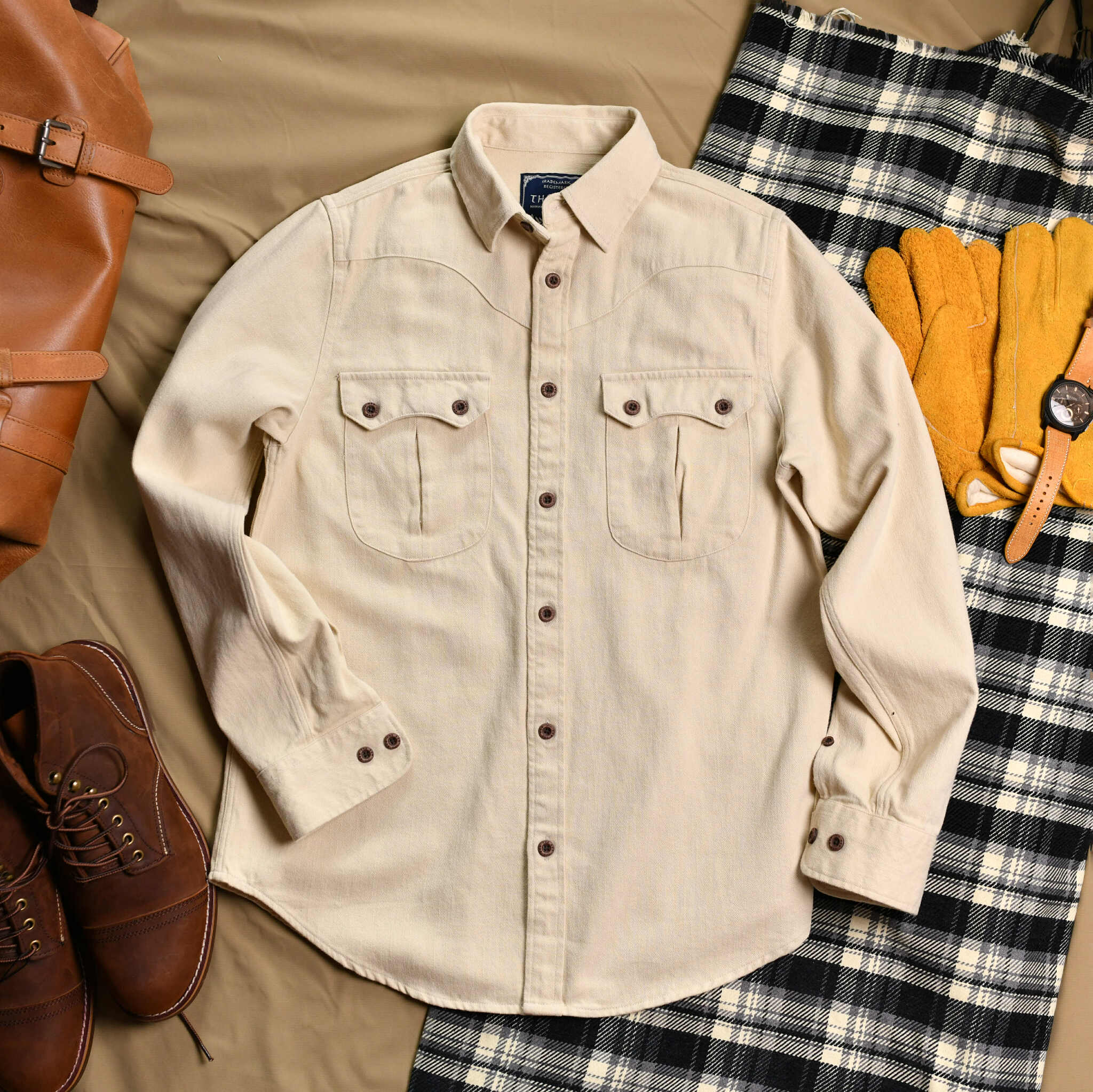 Áo somi kaki 2 túi nắp KEM THE1970 SM844